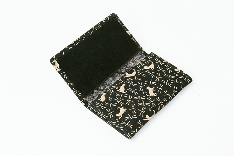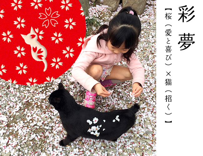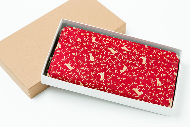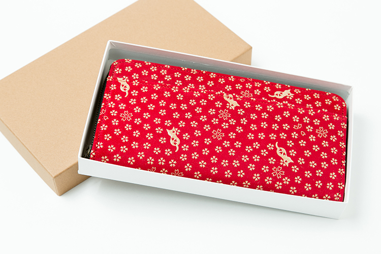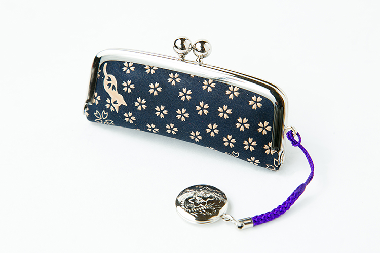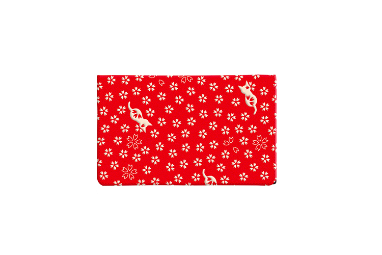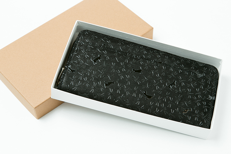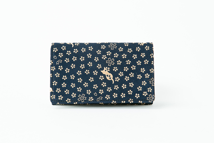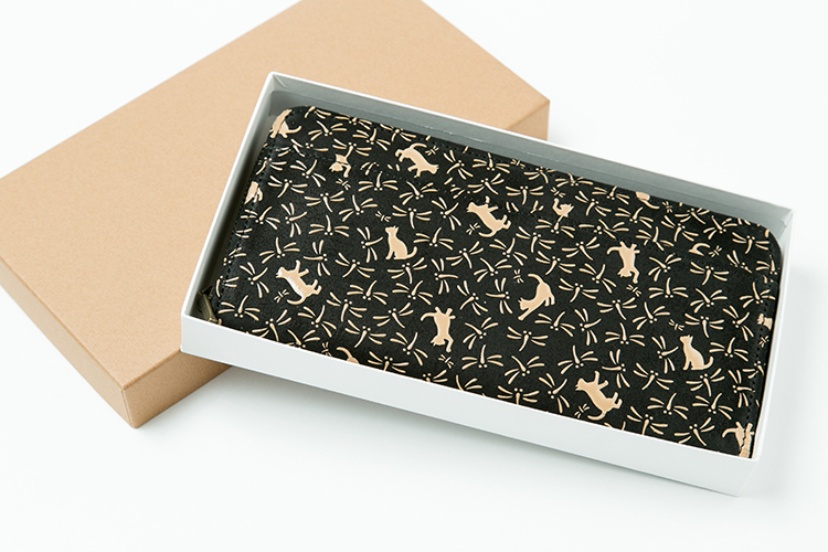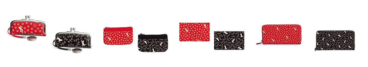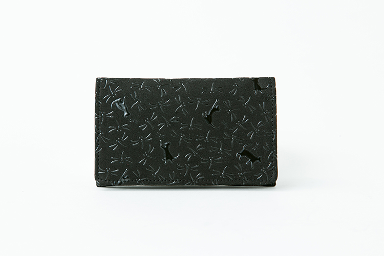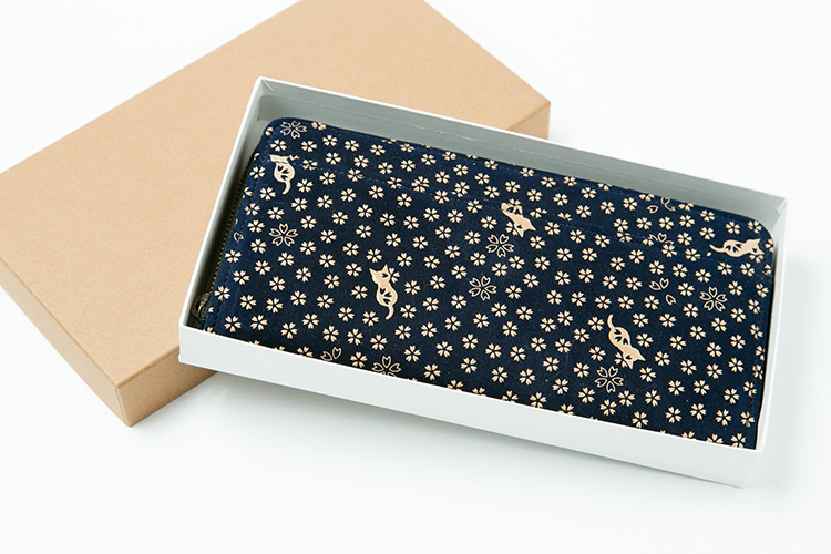 勝招猫(猫×トンボ)と彩夢(猫×桜)の二柄。 ラインナップは、それぞれ長財布、名刺入れ、小銭入れ、印章ケースの合計4種類。