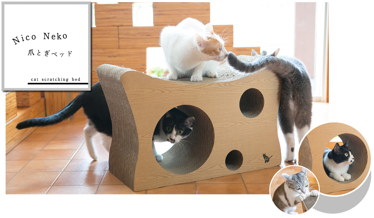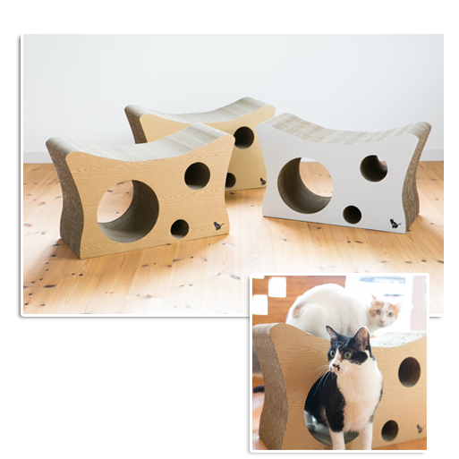 単なる爪とぎとしてだけではなく、 遊具やベットとしても使える点も自慢のポイントです。